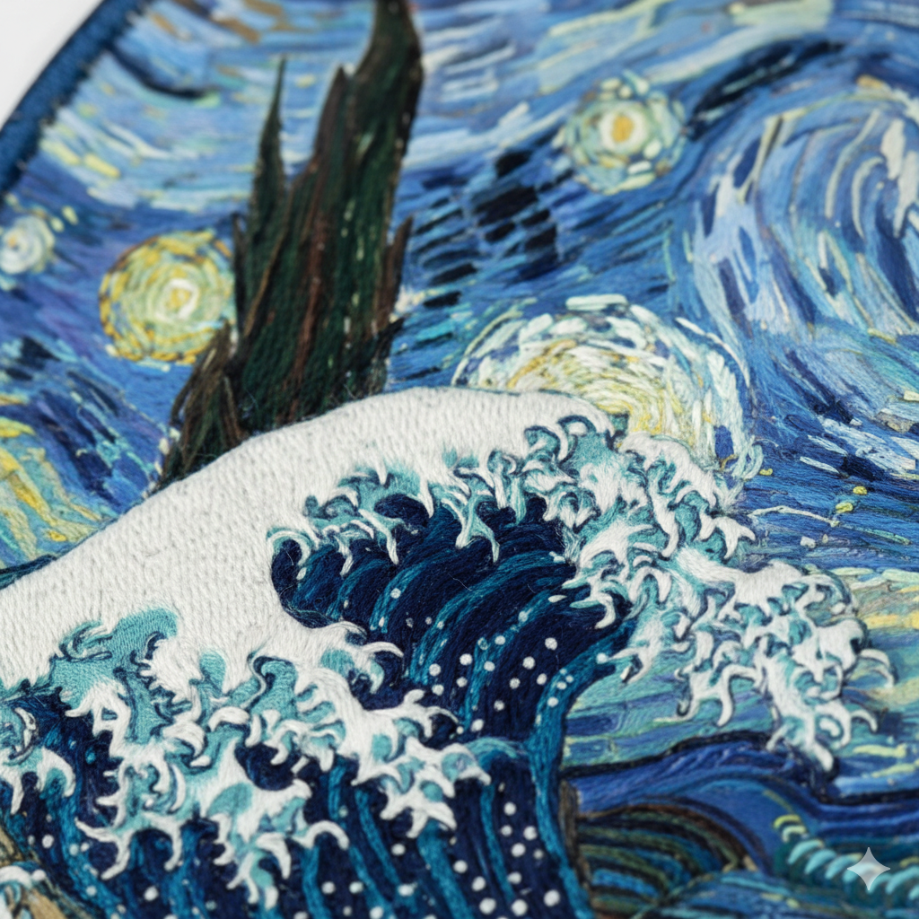 The Great Wave x Starry Night – Embroidered Iron-On Patch